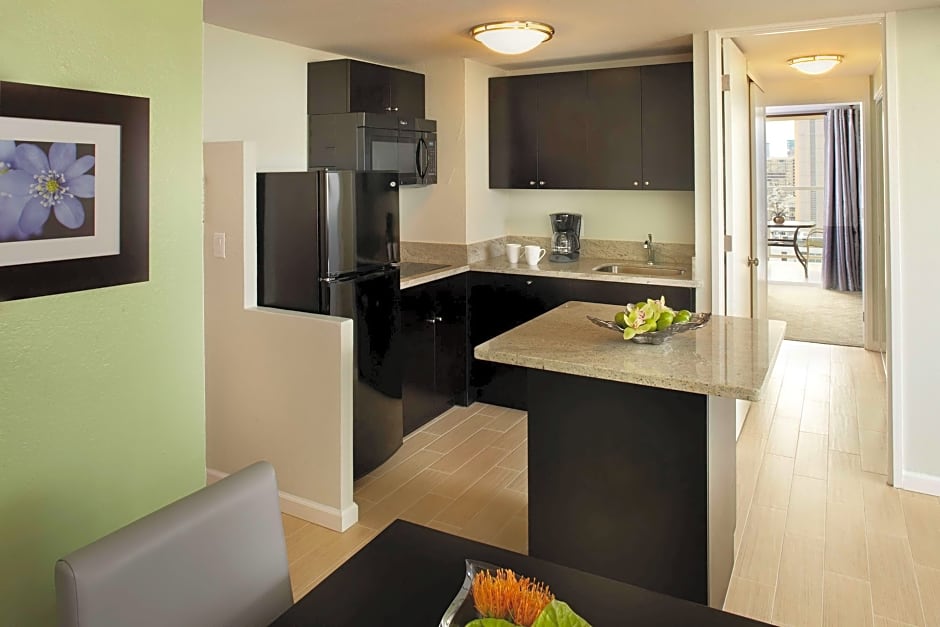 객실은 스튜디오부터 스위트까지 다양한 유형과 오션뷰, 파노라믹 오션뷰부터 도시 및 랜드마크 전경까지 여러 전망을 제공하며 구성도 다양합니다. 많은 객실형에는 간이 주방(키친넷)이 있어 객실을 떠나지 않고도 간단한 간식이나 가벼운 식사를 준비하기 쉽습니다.
